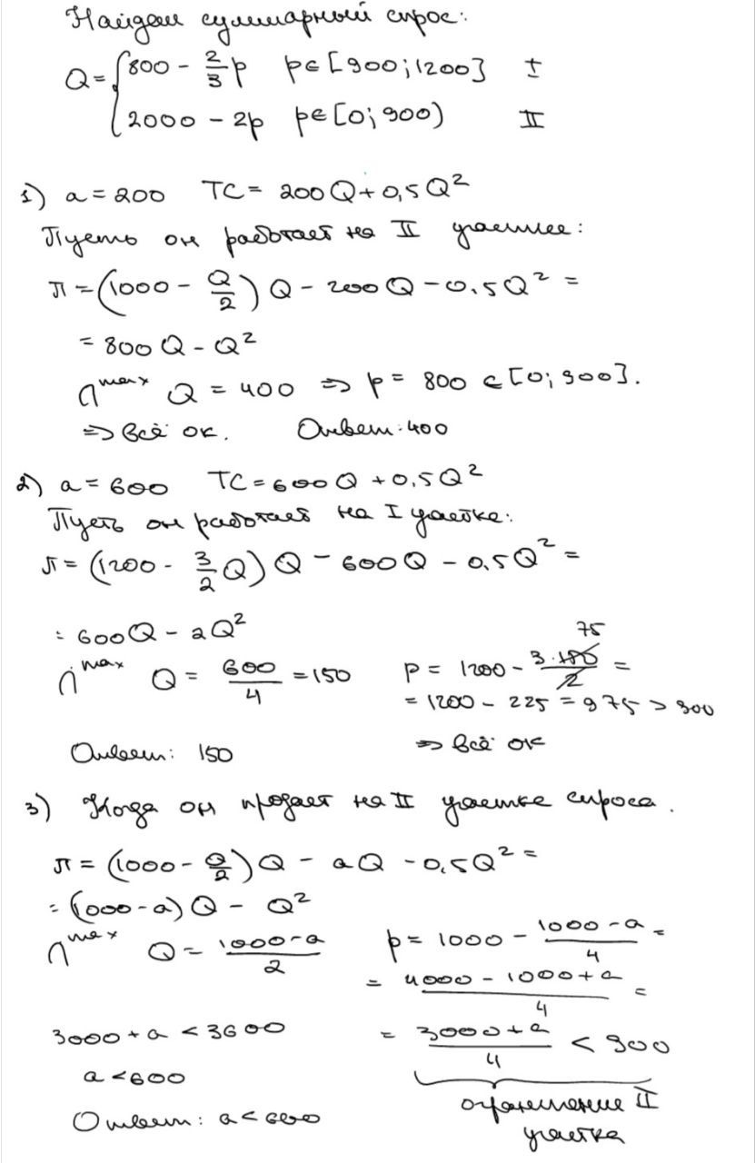 (b) Какую цену и количество выберет фирма при a = 600?