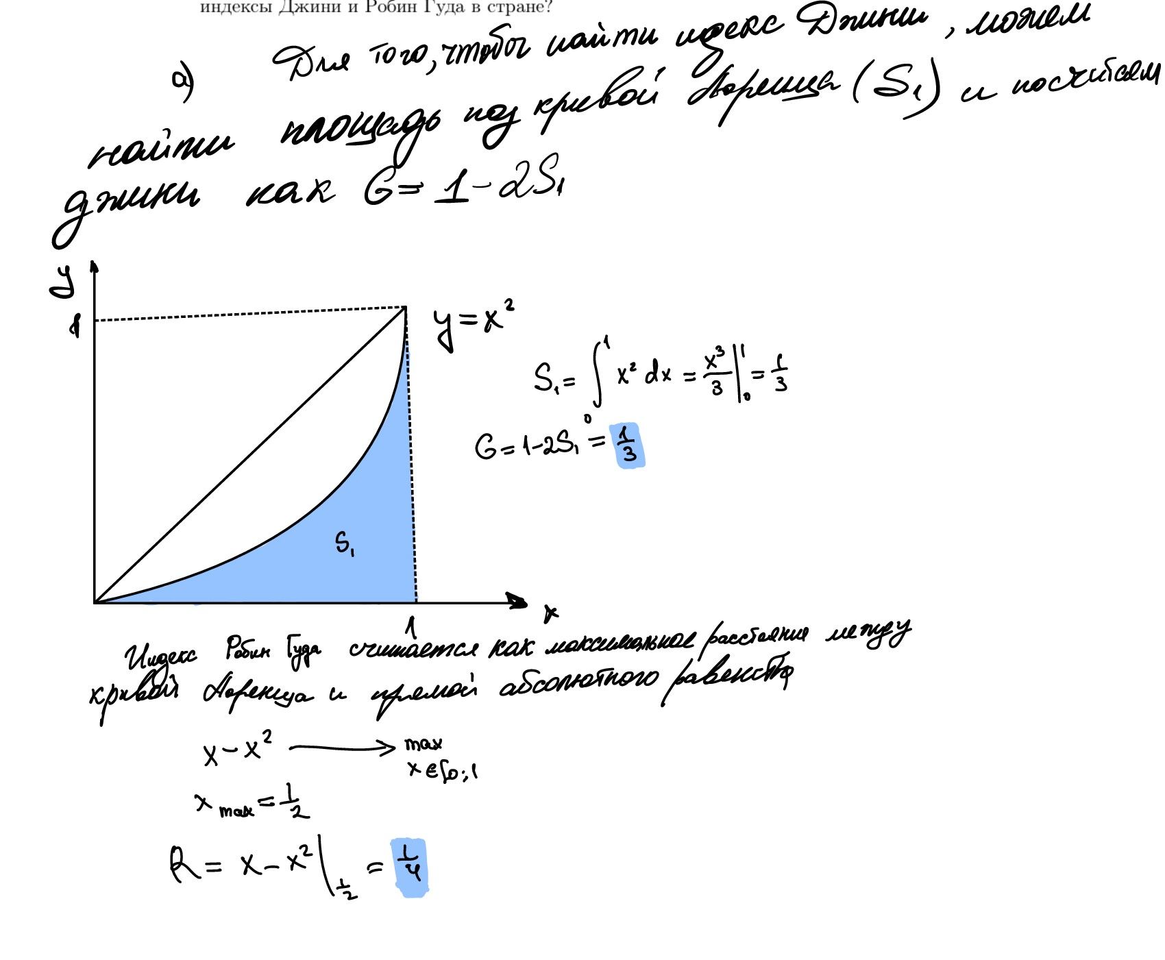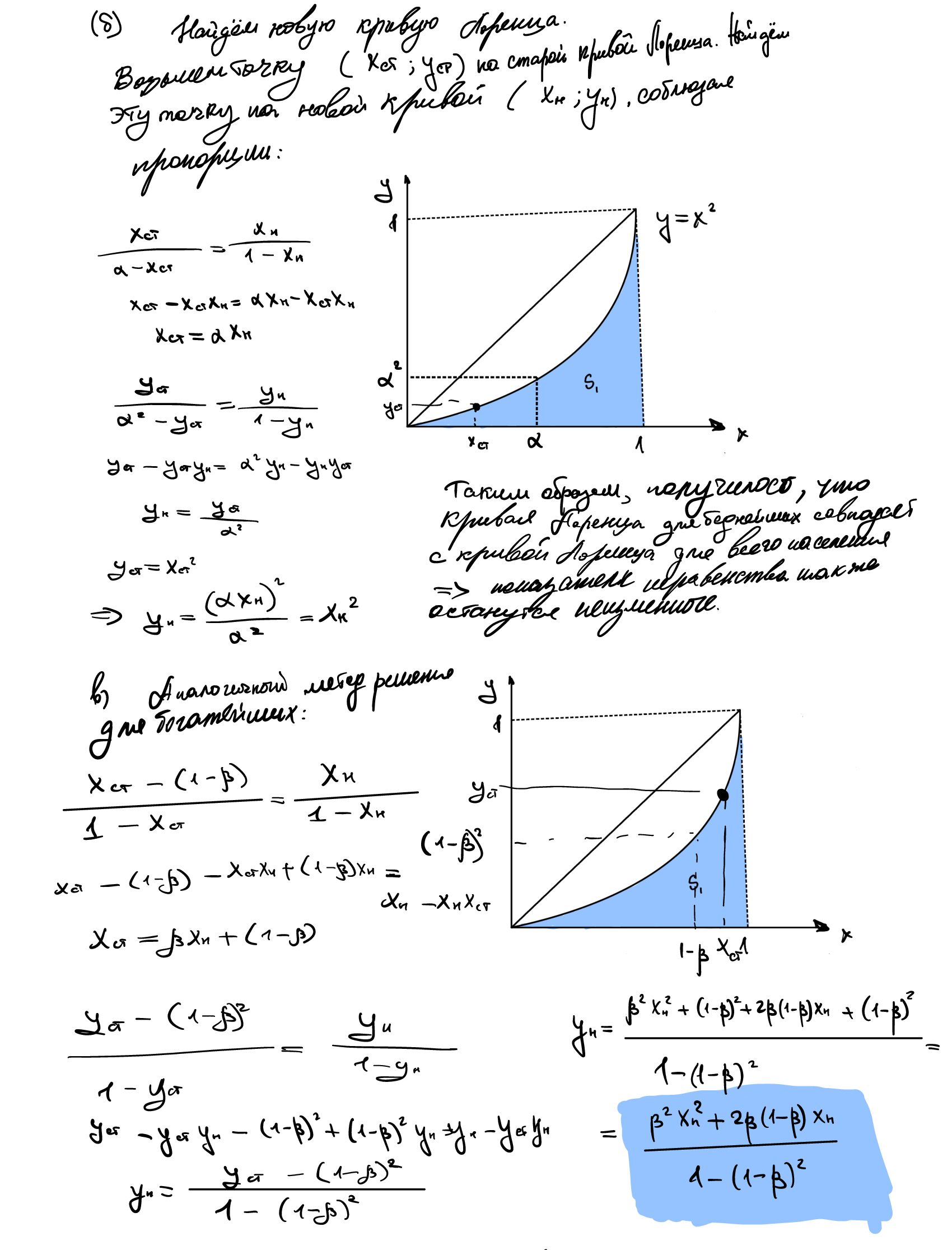 a) Для начала определите изначальный уровень неравенства: посчитайте индекс Джини и индекс Робин Гуда для всего населения с кривой Лоренца